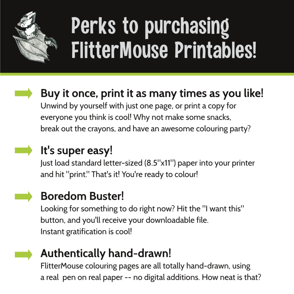 *** Your $2 goes directly towards purchasing ink, pens, and paper, so FlitterMouse Studio can keep creating the art you love! Thanks for your support!